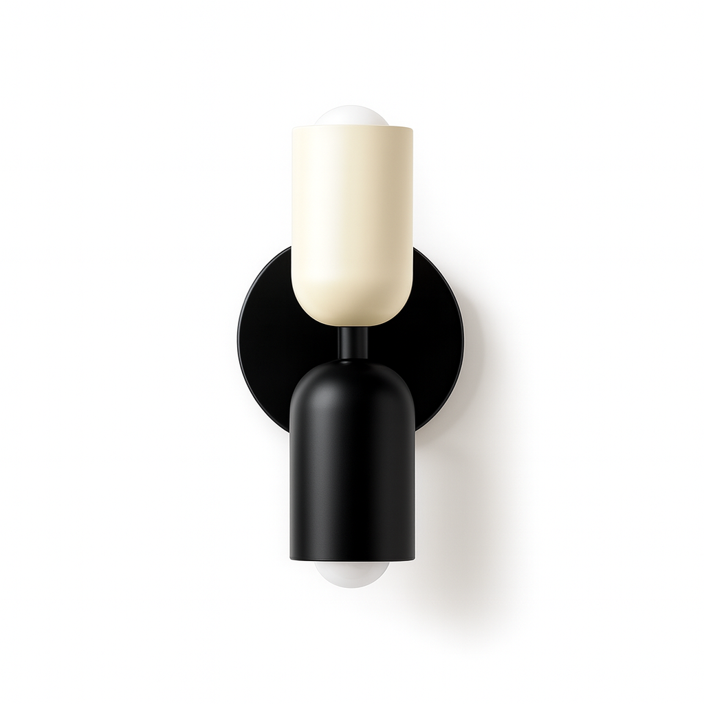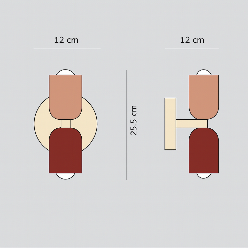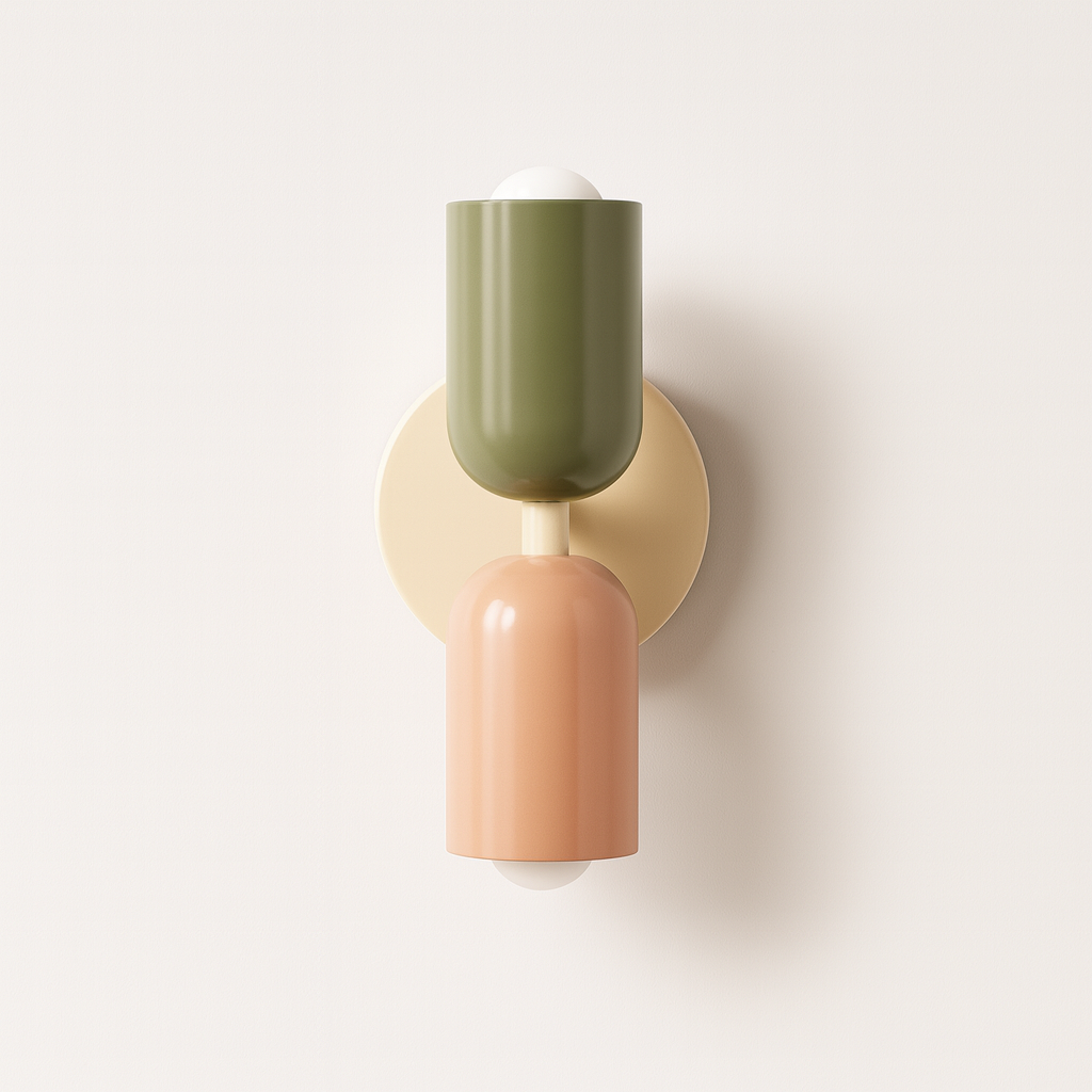 L’applique Matera reprend les teintes douces et équilibrées de la palette Morandi à travers deux modules colorés superposés. Sa silhouette verticale diffuse une lumière subtile et chaleureuse, idéale pour une chambre, un salon ou un couloir.