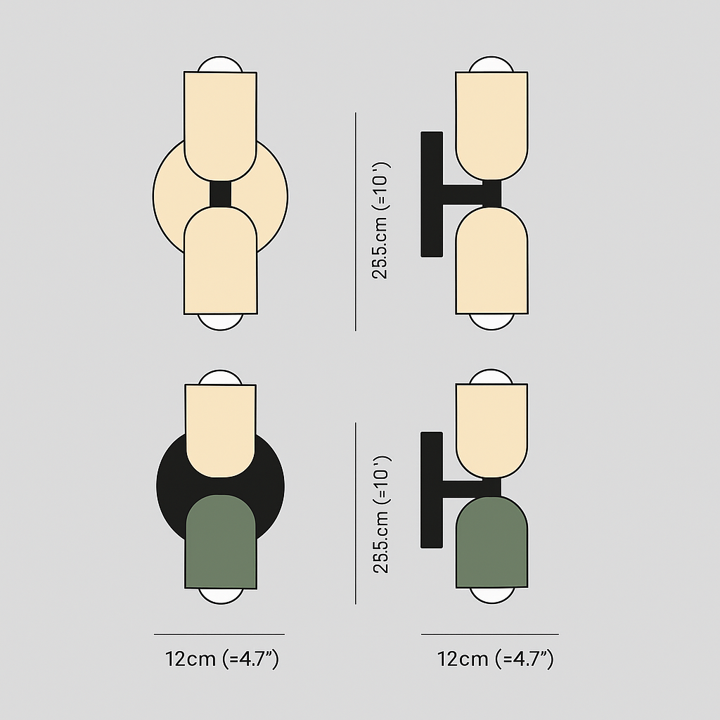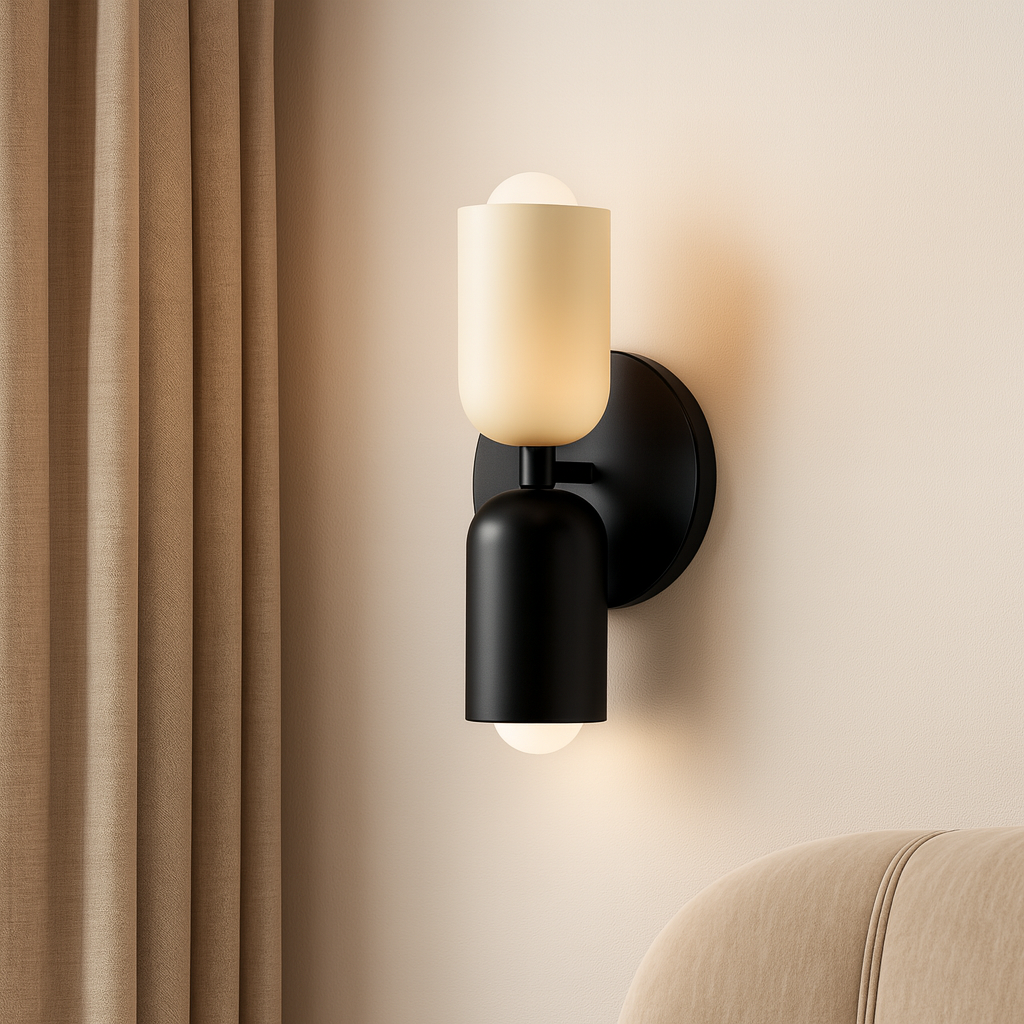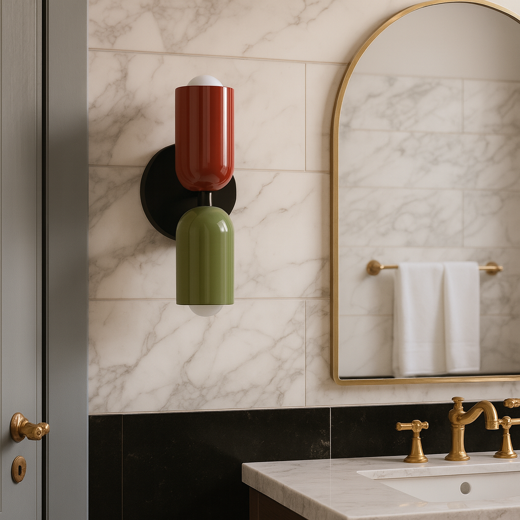 L’applique Matera reprend les teintes douces et équilibrées de la palette Morandi à travers deux modules colorés superposés. Sa silhouette verticale diffuse une lumière subtile et chaleureuse, idéale pour une chambre, un salon ou un couloir.