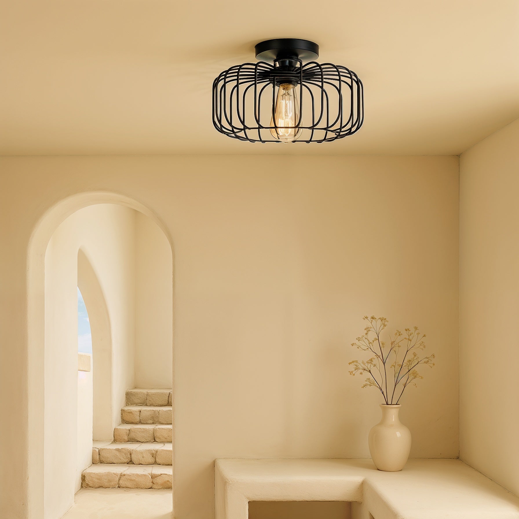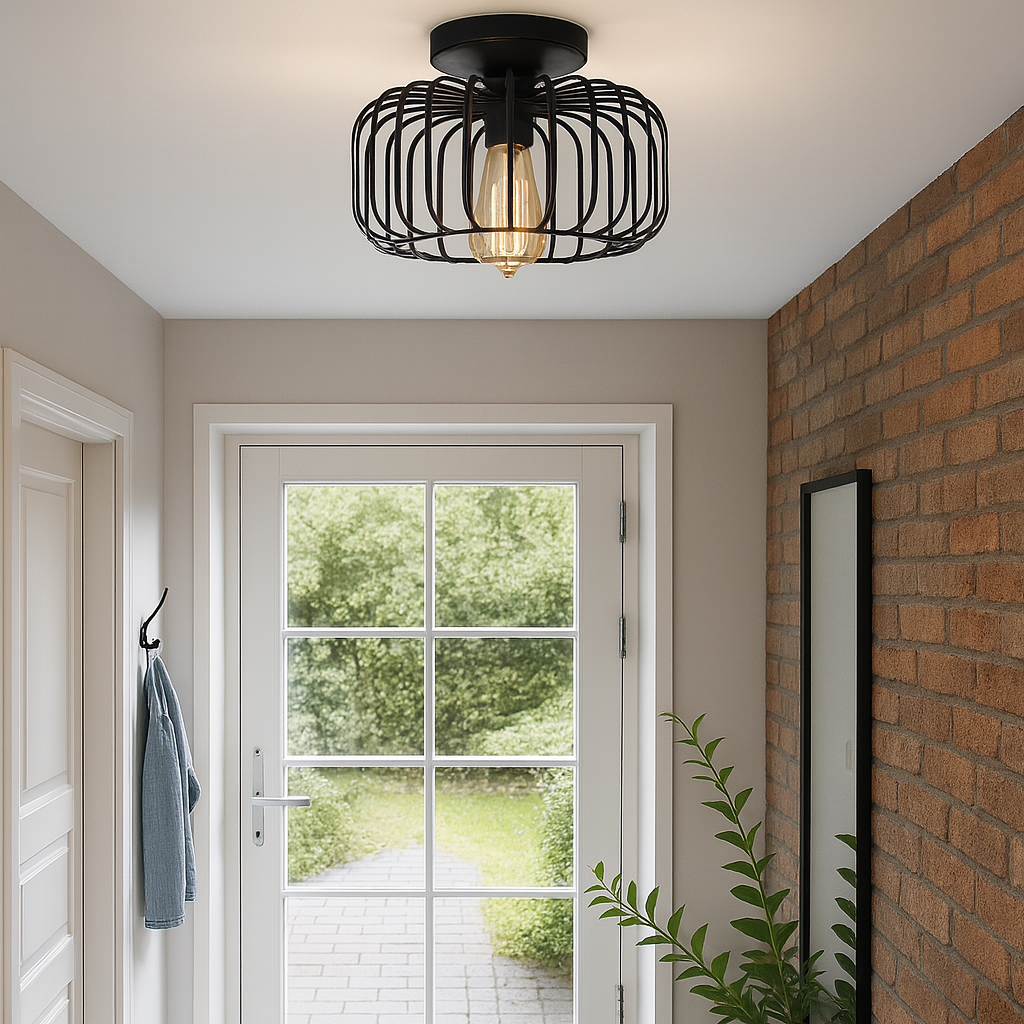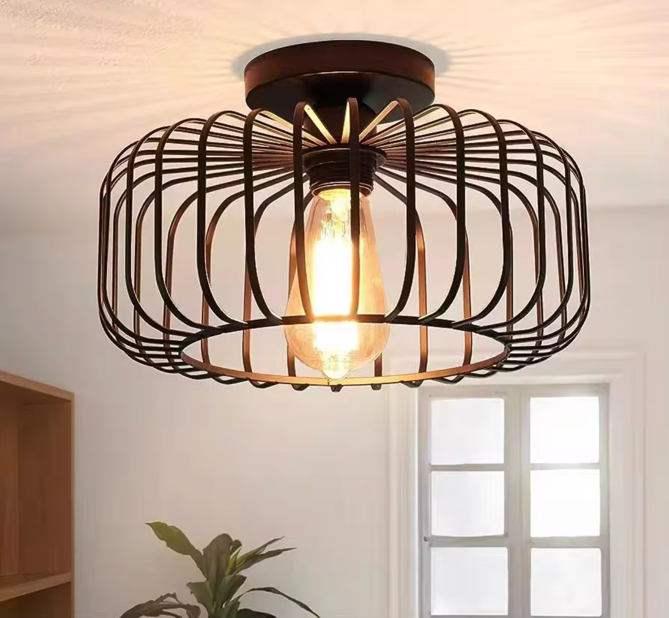 Ce plafonnier industriel et rétro en forme de cage à oiseaux apporte une touche originale à votre intérieur.