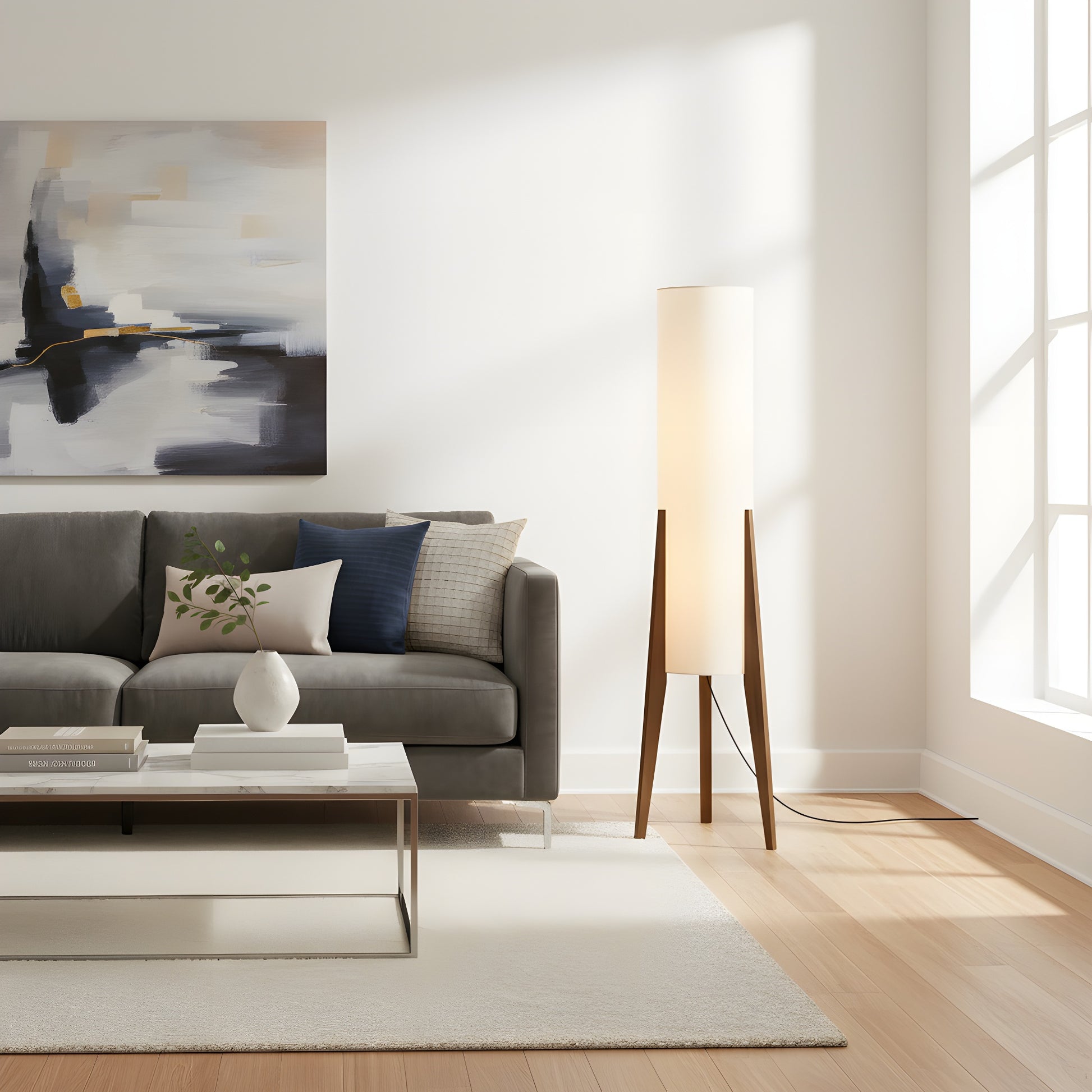 Le lampadaire Positano allie lignes épurées et chaleur naturelle pour sublimer votre intérieur. Sa structure en noyer foncé, montée sur un trépied élancé, accueille un abat-jour cylindrique qui diffuse une lumière douce et uniforme.