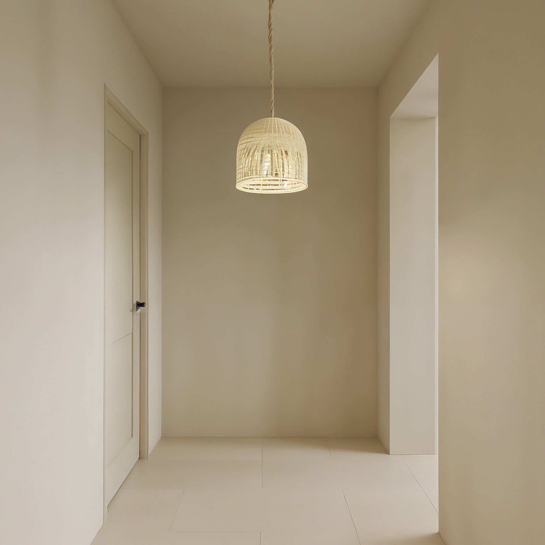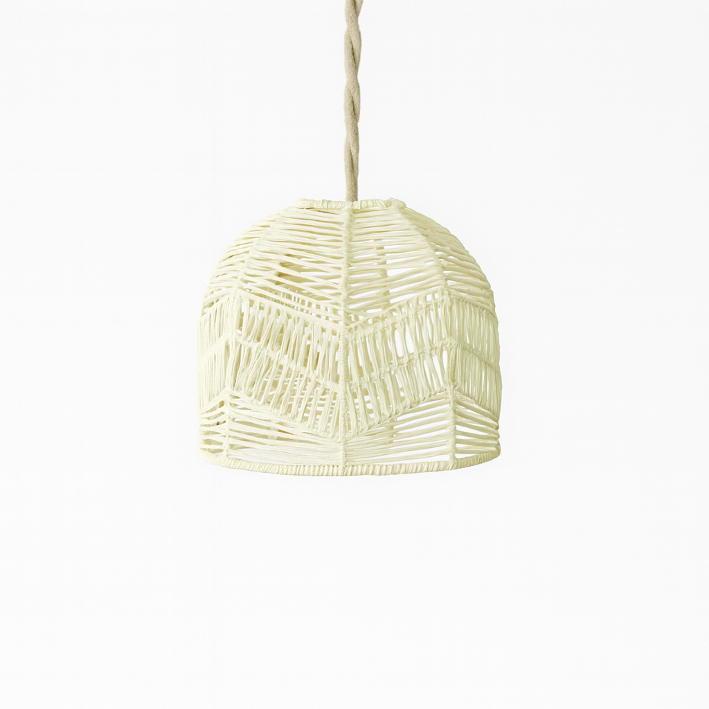 La suspension Bonifacio offre une lumière douce grâce à son tressage artisanal qui filtre délicatement l’éclairage. Sa forme compacte équilibre facilement un coin lecture, une table de chevet ou une entrée sans encombrer l’espace.